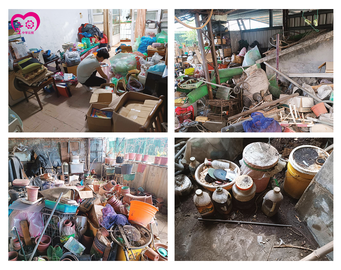 為了讓爺爺安心回鄉養病,協會啟動了獨居長者計劃與愛心清潔社攜手合作,一起為他清理這個承載半生回憶的家,耗費了一個多月的時間,才將屋內所有的雜物清除乾淨,就算遇到寒流跟颱風也沒有熄滅我們想要幫助陳爺爺的決心,在幾個颳風下雨寒冷的夜晚趕工整理東西,最困難的,還是頂樓一桶一桶早已發酵、又酸又臭的液體不能倒馬桶、不能倒水槽、也不能當廚餘丟垃圾車,還因此造成公共管線阻塞、引來鄰居抗議,那是體力與心理都極為煎熬的一段過程,但沒有人放棄。