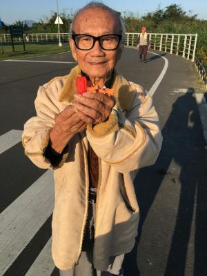 爺爺幾乎每天都去河堤走走 散散步