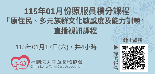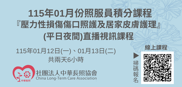 114年12月【長照積分課程】長期照顧服務人員『必修五合一消防安全、緊急應變、感染管制、性別敏感度 、傳染病防治』(線上直播課程)