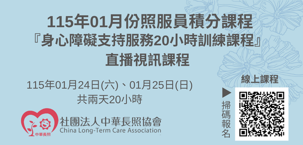 114年12月【長照積分課程】長期照顧服務人員『身心障礙支持服務20小時訓練』(線上直播課程)