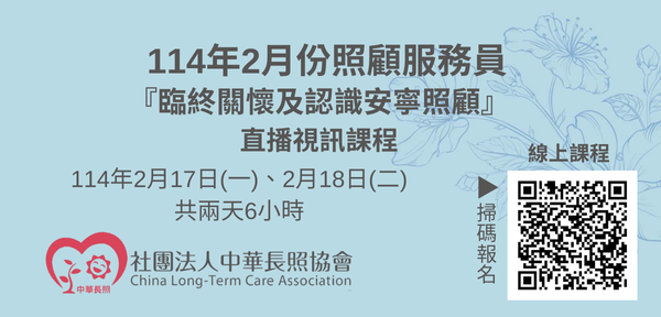 114年02月【長照積分課程】長期照顧服務人員『臨終關懷及認識安寧照顧』(線上課程)