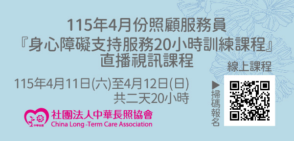 115年4月【長照積分課程】長期照顧服務人員『身心障礙支持服務 20 小時訓練課程』(線上直播課程)