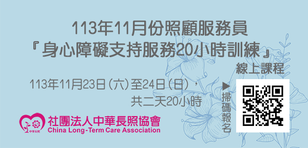 113年11月【長照積分課程】長期照顧服務人員『身心障礙支持服務20小時訓練課程』