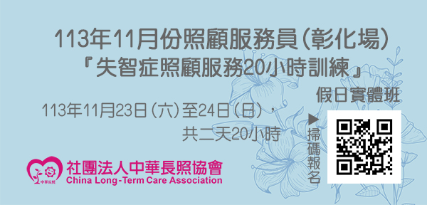 113年11月【長照積分課程】長期照顧服務人員『失智症照顧服務20小時訓練』(彰化場)