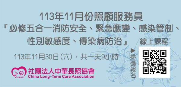 113年11月【長照積分課程】長期照顧服務人員『長照必修五合一 消防安全、緊急應變、感染管制、性別敏感度、傳染病防治』