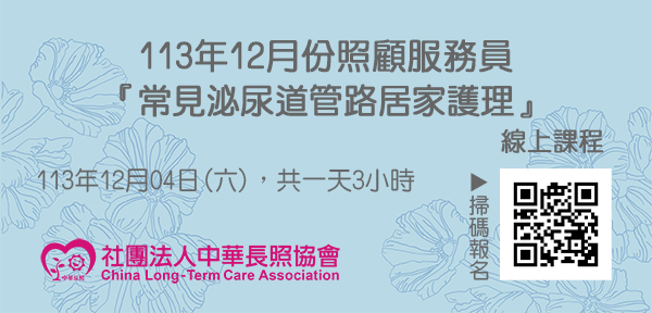 113年12月【長照積分課程】長期照顧服務人員『常見泌尿道管路居家護理』