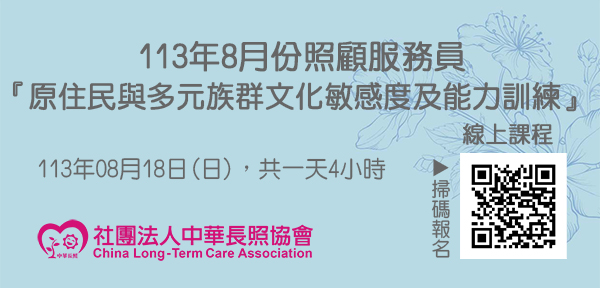 113年8月【長照積分課程】長期照顧服務人員『113年8月【長照積分課程】長期照顧服務人員『原住民與多元族群文化敏感度及能力訓練』