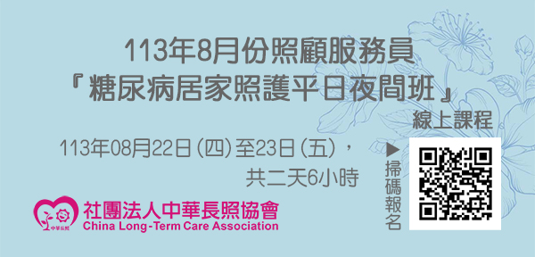 113年8月【長照積分課程】長期照顧服務人員『113年8月【長照積分課程】長期照顧服務人員『糖尿病居家照護平日夜間班』