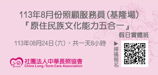 113年8月【長照積分課程】長期照顧服務人員『113年8月【長照積分課程】長期照顧服務人員『原住民族文化能力五合一課程』(基隆場)