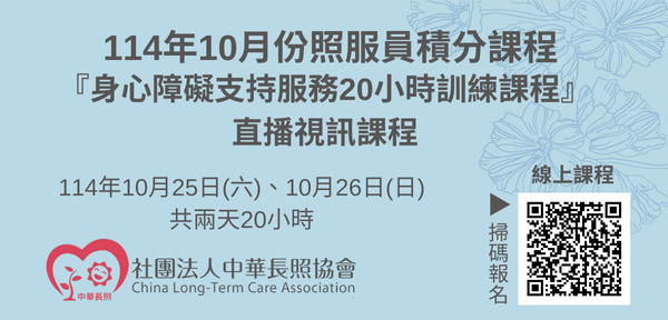 114年10月【長照積分課程】長期照顧服務人員『身心障礙支持服務20小時訓練』(線上直播課程)