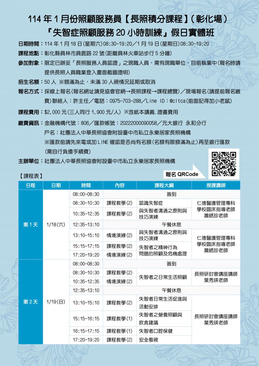 10.課程期間請攜帶長照人員小卡及個人證明文件以利查驗。