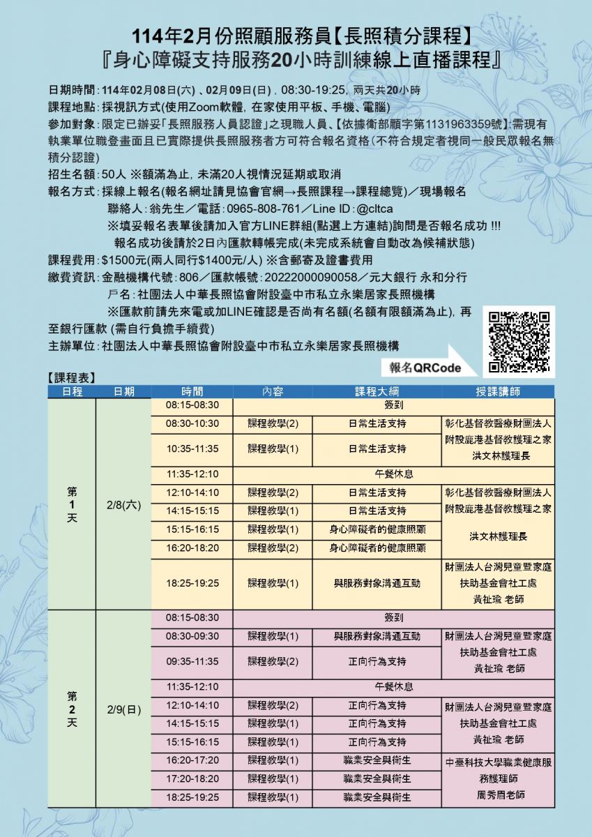 (12)不提供紙本講義,於課前2-3天提供雲端檔案自行下載。