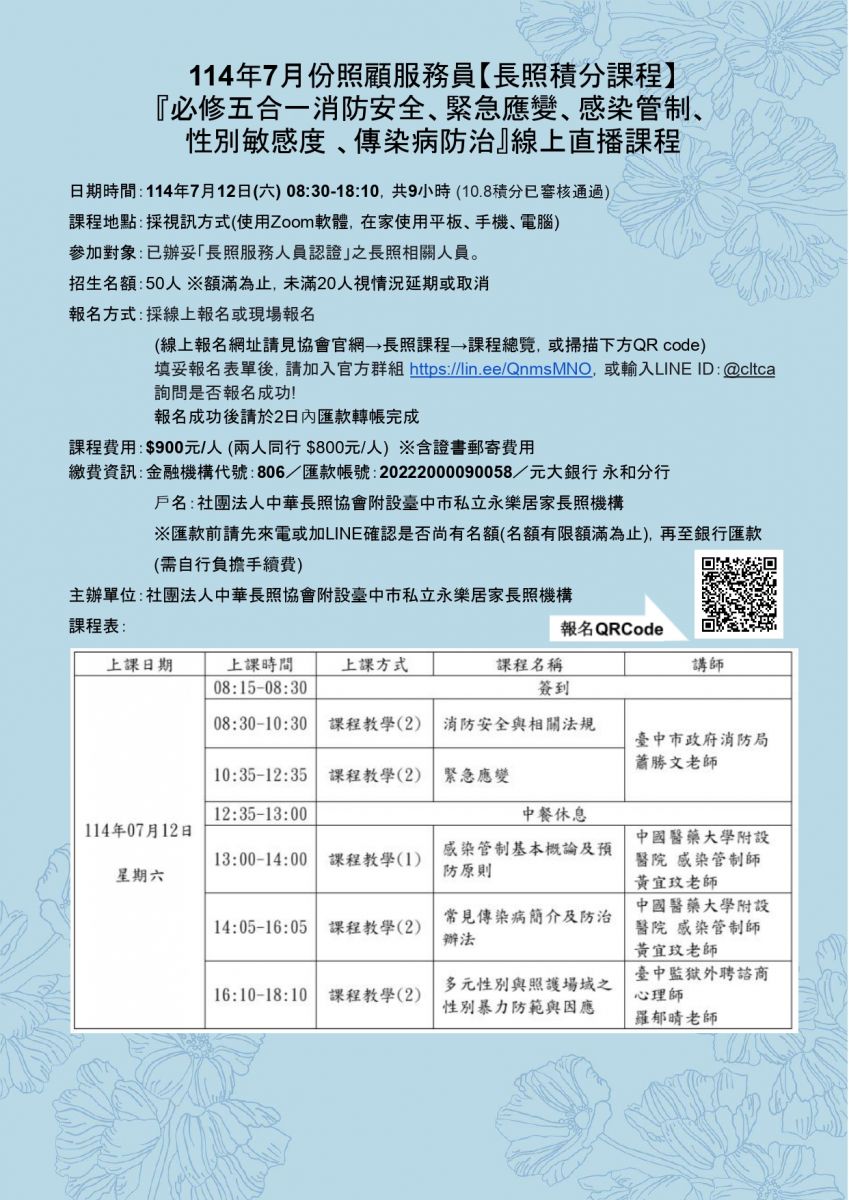 (13)上課期間不得提供長照服務亦不得同時參加其他長照積分課程,如被稽核到本單位不予退費及承擔相關責任。