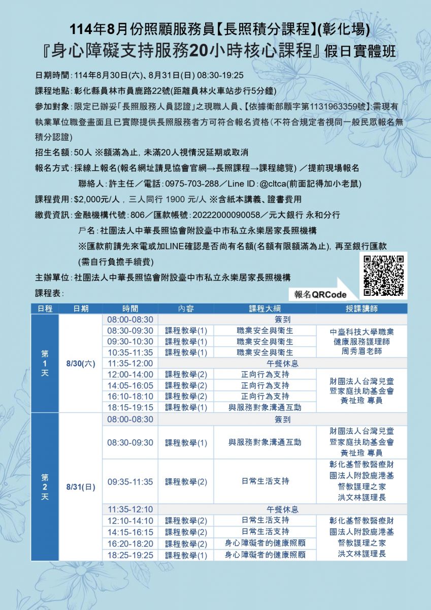 (9)課程期間請攜帶長照人員小卡及個人證明文件以利查驗。