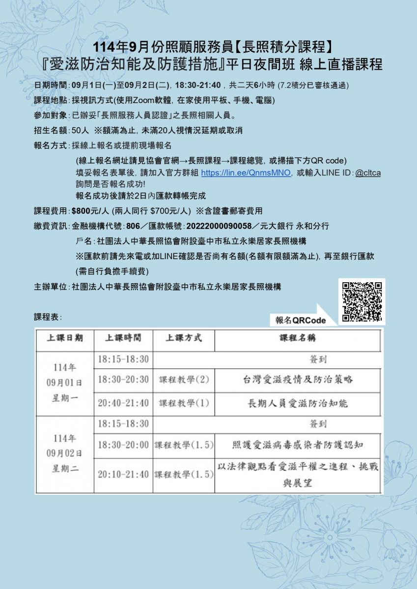(13)上課期間不得提供長照服務亦不得同時參加其他長照積分課程,如被稽核到本單位不予退費及承擔相關責任。
