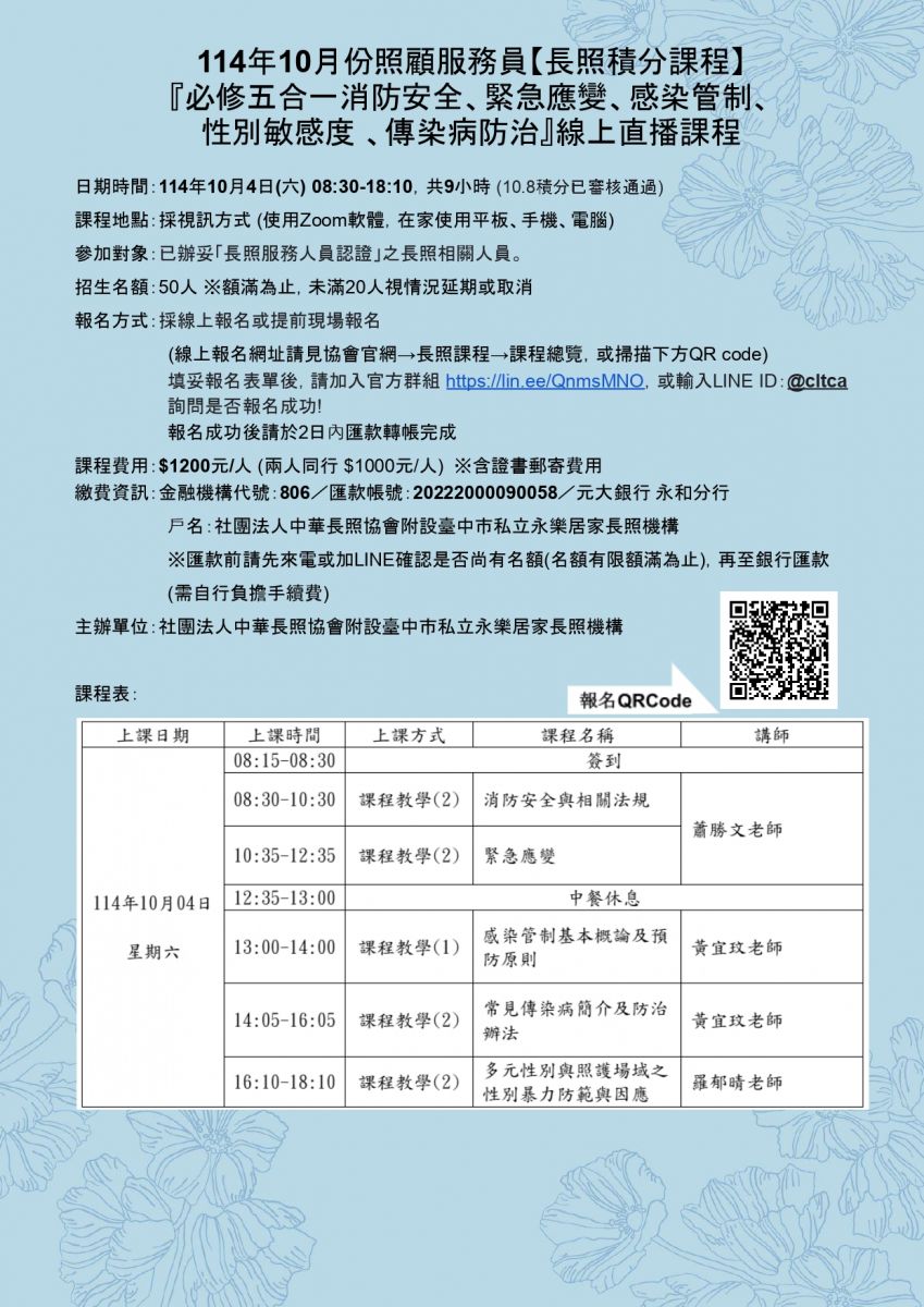 (13)上課期間不得提供長照服務亦不得同時參加其他長照積分課程,如被稽核到本單位不予退費及承擔相關責任。