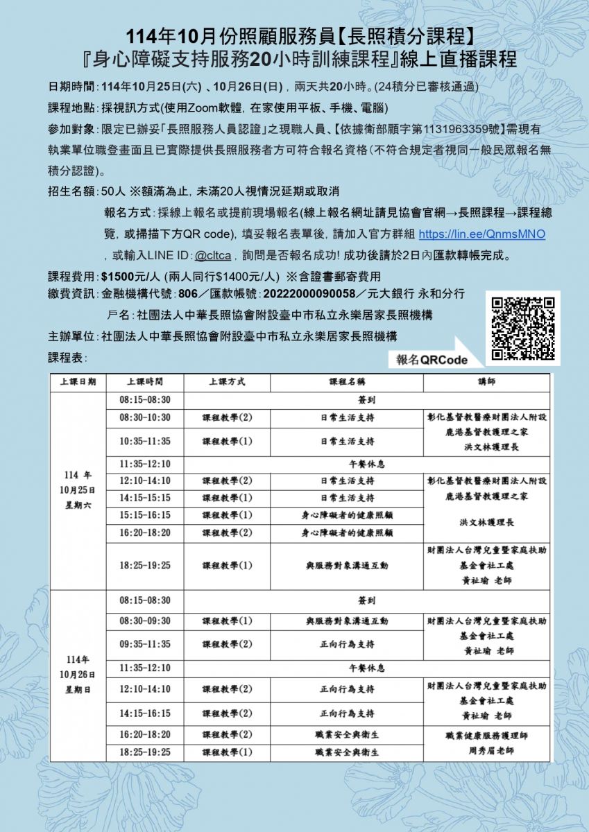 首頁 /   長照課程   /  居服員在職積分課程
