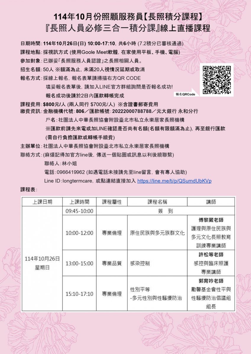 (13)上課期間不得提供長照服務亦不得同時參加其他長照積分課程,如被稽核到本單位不予退費及承擔相關責任。