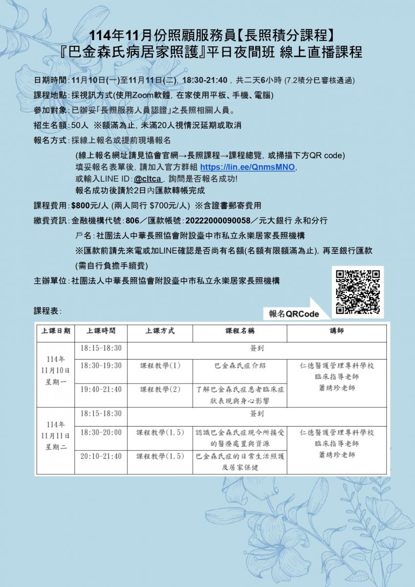 (13)上課期間不得提供長照服務亦不得同時參加其他長照積分課程,如被稽核到本單位不予退費及承擔相關責任。
