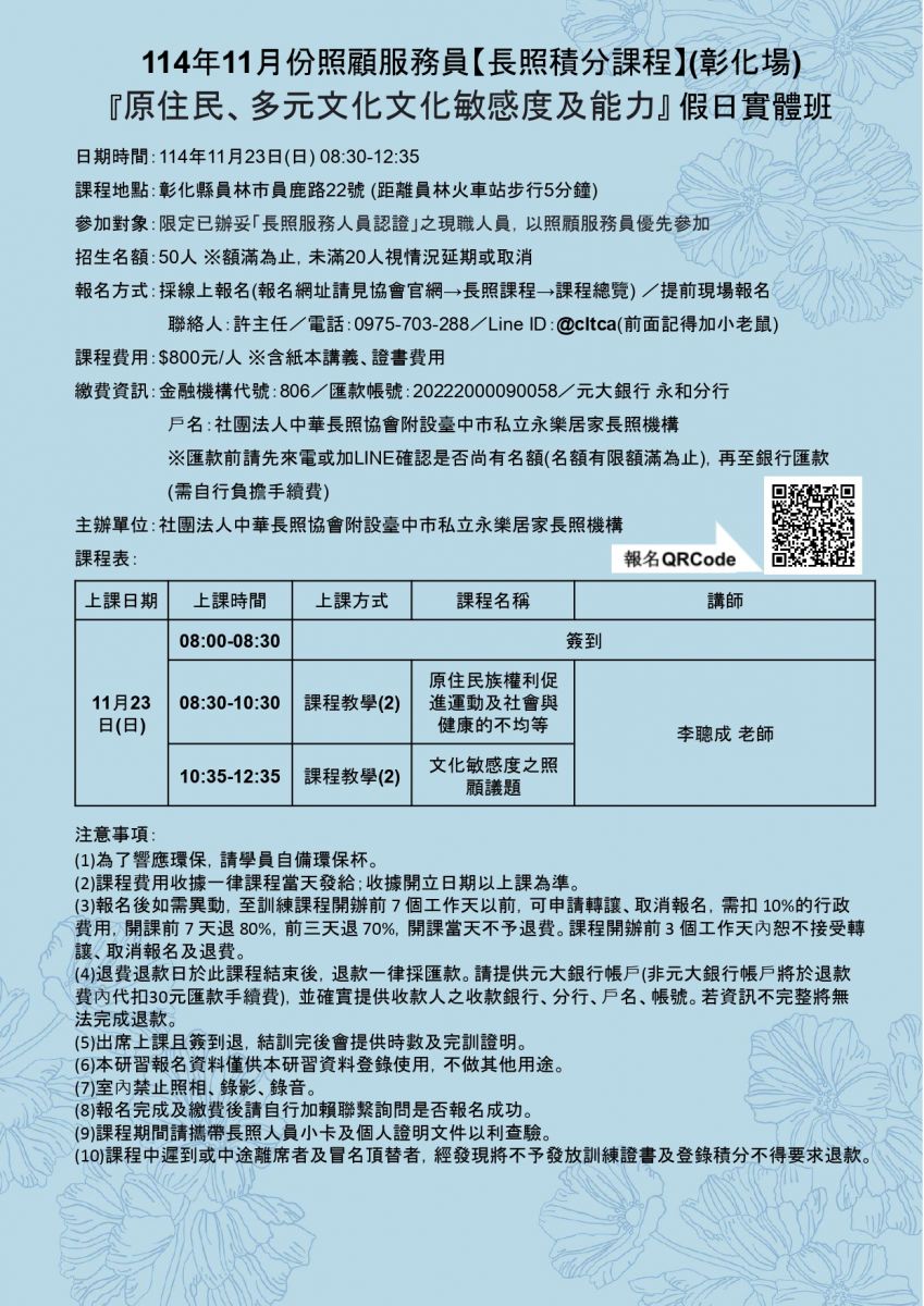 首頁 /  長照課程  / 居服員在職積分課程