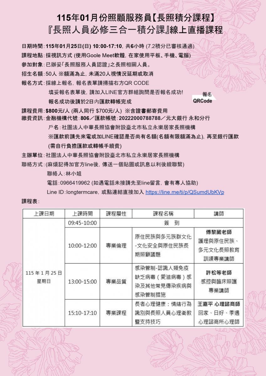 (13)上課期間不得提供長照服務亦不得同時參加其他長照積分課程,如被稽核到本單位不予退費及承擔相關責任。