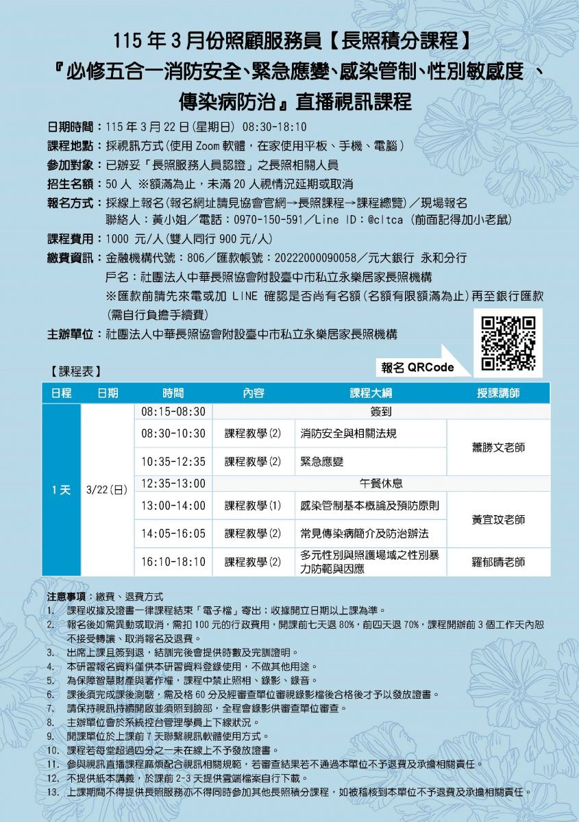 首頁 /  長照課程  / 居服員在職積分課程