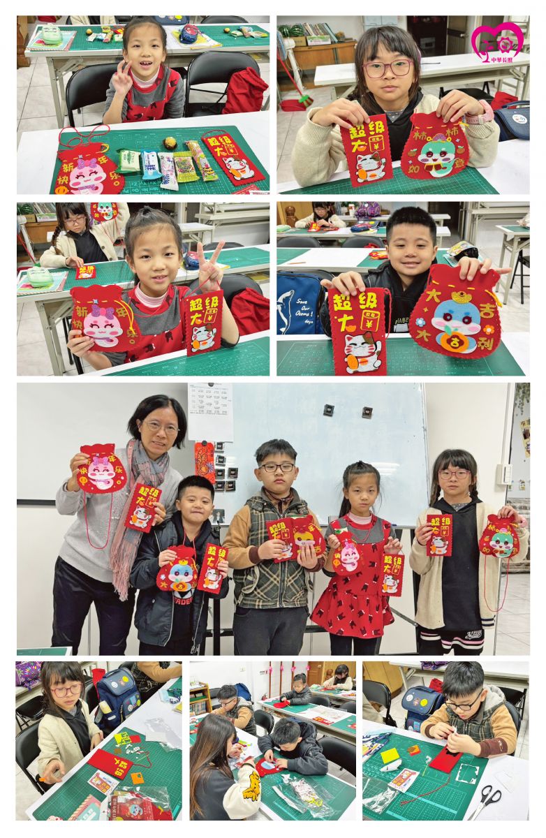 但在這個寒假,協會在寒令營舉辦了——「新年手作DIY」的活動,讓孩子們在老師的陪伴下,親手製作屬於自己的新年紅包和錦囊,每一針、每一線,都蘊含著他們對新年的美好祝願。