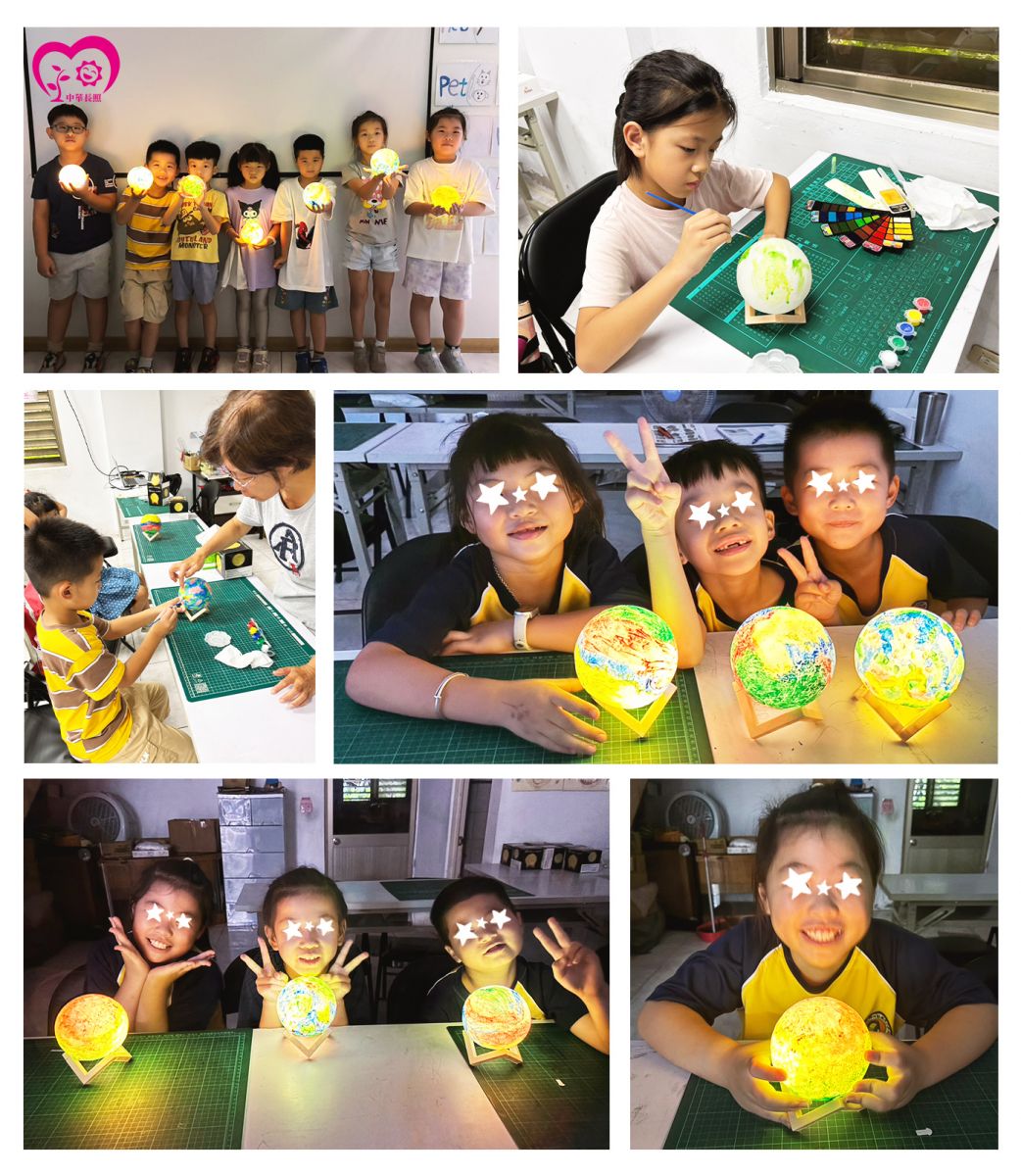 在老師的引導下,孩子們小心地沾了顏料,一筆一筆在屬於自己的月球上揮灑創意,有人畫上溫柔的藍與粉紅,說那是家裡窗邊的夜空;有人塗上大大的笑臉,說那是媽媽下班回家的樣子;還有小朋友畫滿金黃星星,說那是「希望可以讓大家都幸福」,當教室的燈光關上,一顆顆彩繪完成的月球亮了起來,那光柔和閃耀,照亮了孩子們驕傲又滿足的笑容,也照亮了這片偏鄉的夜。